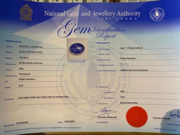 Saphir, blue star, Sri Lanka, 331,85 ct, zertifiziert, noch kein Wertgutachten